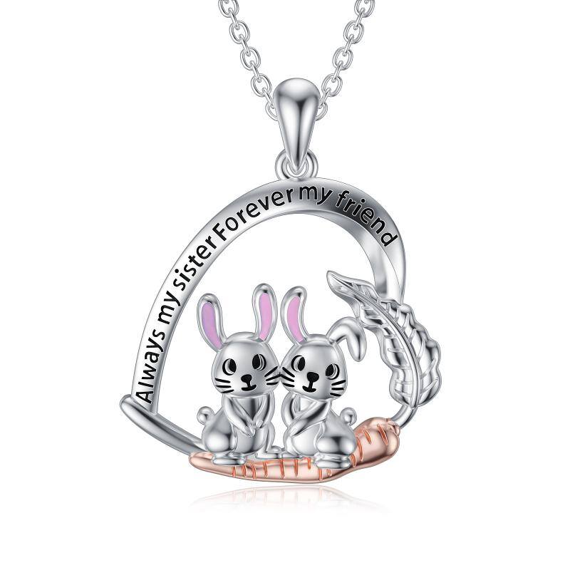 Bunny Necklace Sterling Silver Cute Rabbit Animal Necklace Sister Gift For Women Girl Friends